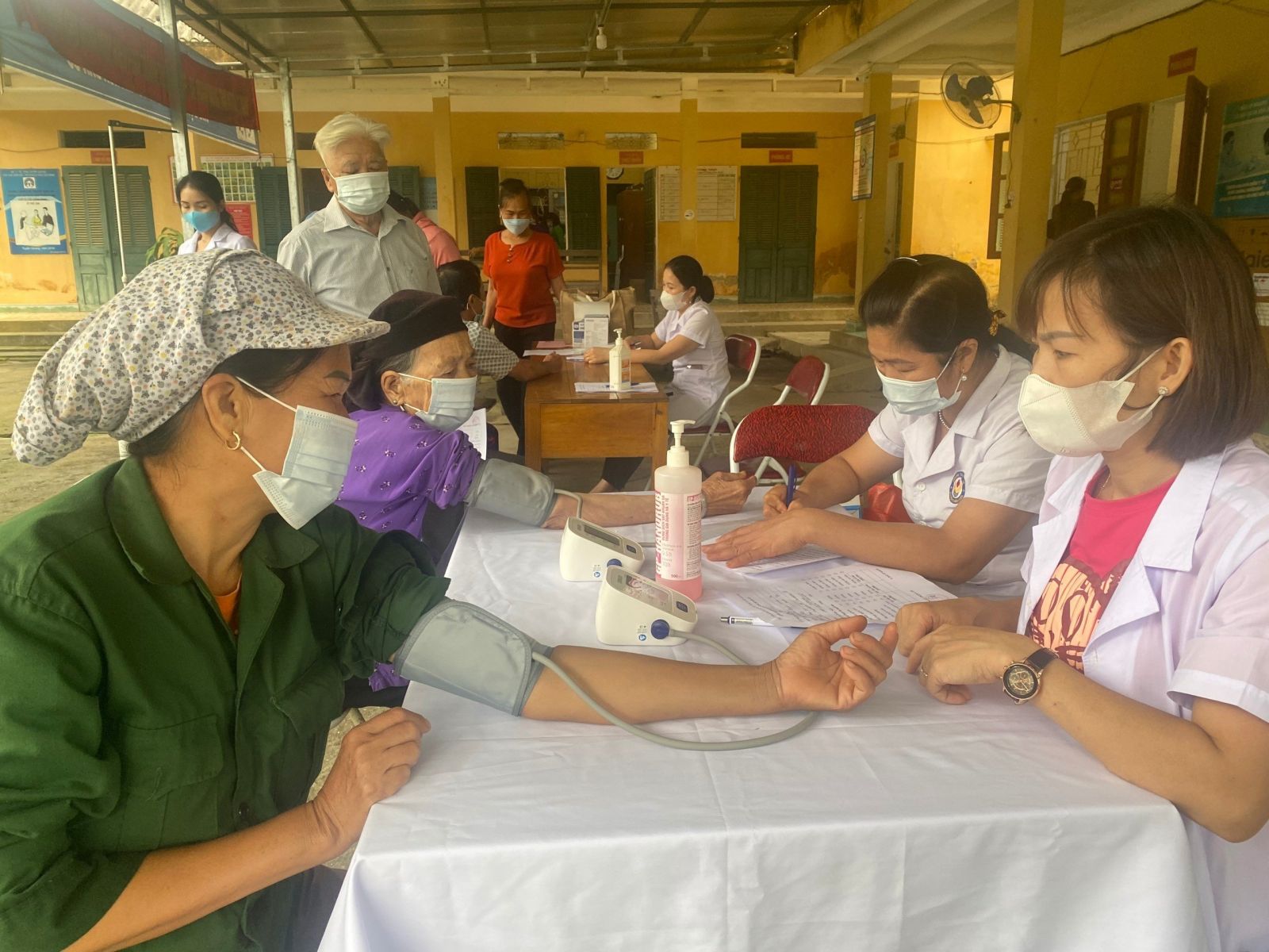 Khám sàng lọc tăng huyết áp cho người dân tại xã Tân Mỹ (Chiêm Hóa).